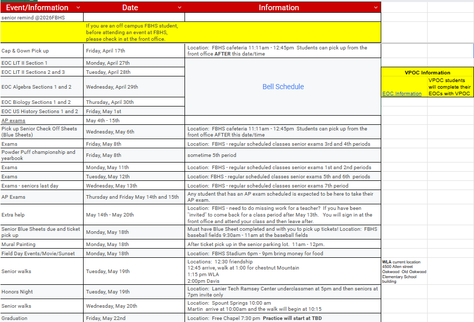 • Seniors, pay your Flowery Branch Senior Dues (which includes your Cap/Gown/Tassel) during open house and check it off your list!
